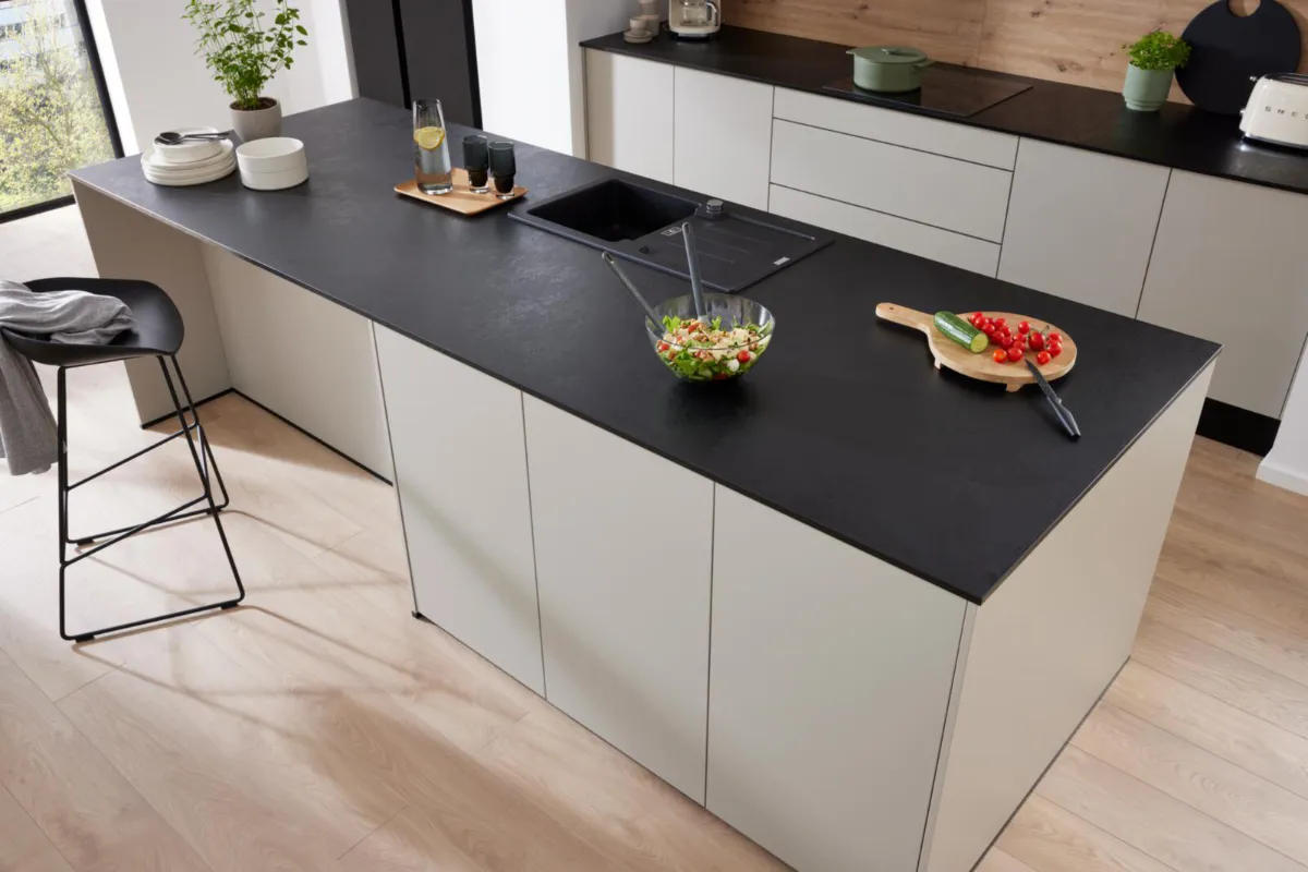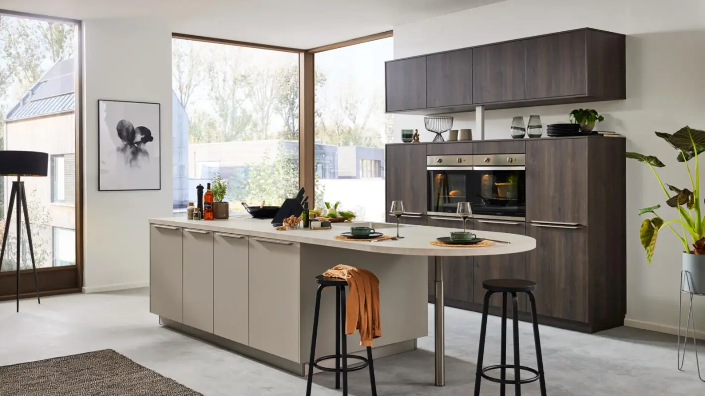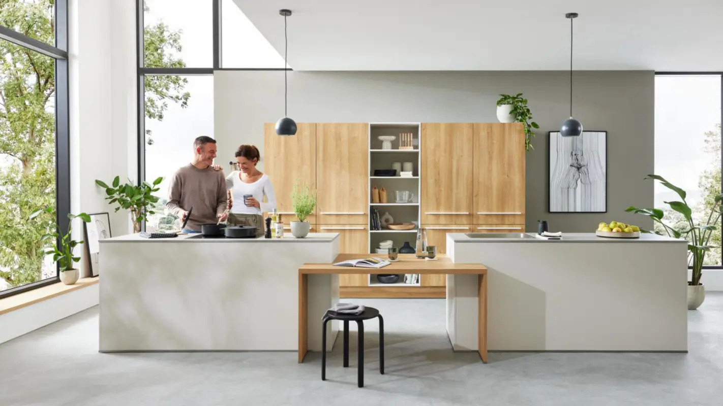 Ob Sie in der Küche frühstücken, zusammen Freunde einladen oder einfach nur einen ruhigen Moment mit einer Tasse Kaffee genießen – mit individuell gestaltbaren Fronten, Griffen und Arbeitsplatten verleihen Sie Ihrer Küche eine ganz persönliche Handschrift.